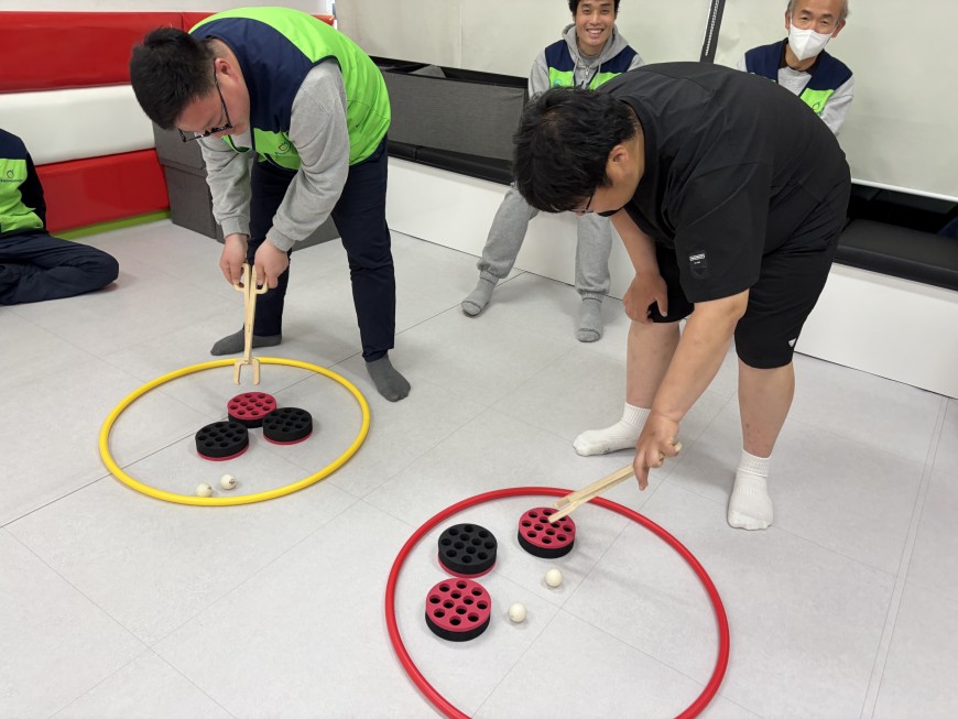가벼운 몸풀기 스트레칭을 시작으로 집게를 활용하여